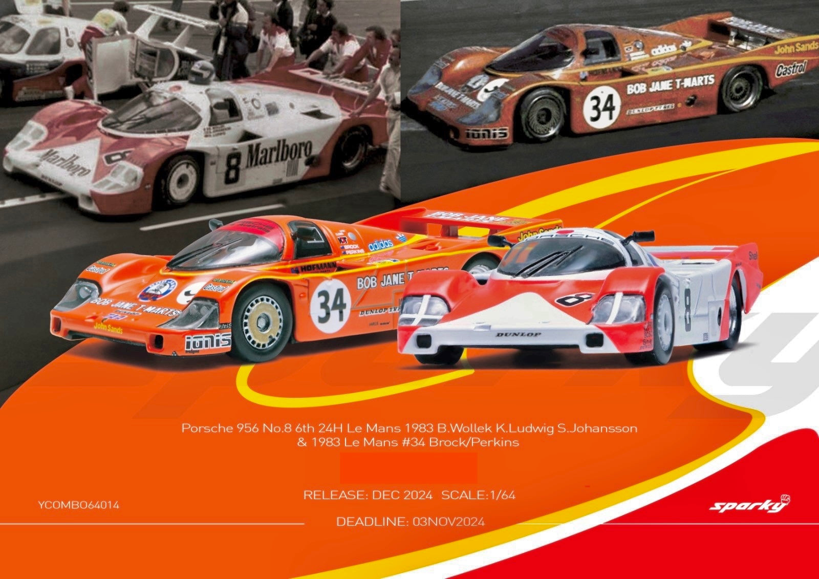 YCOMBO64014 Sparky 1/64 Porsche 956 No.8 6th 24H Le Mans 1983 B.Wollek K.Ludwig S.Johansson ブランド: Spark スケール: 1/64 モデル: Sparky 1/64 ポルシェ 956 No.8 6位 ル・マン24時間レース 1983 B.Wollek K.Ludwig S.Johansson 材質: ダイキャスト 発送重量: 0.4kg 特徴: - 可動式 写真は参考用です
